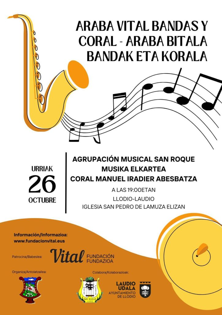 Urriaren 26an, Manuel Iradier Abesbatzak «San Roque Musika Elkartea” Laudioko udal bandarekin kontzertua partekatuko du, 19:00etan Lamuzako San Pedro elizan.